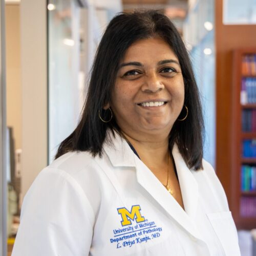 Dr. Kunju received an M.D. from the Grant Medical College (Mumbai, India) in 1993. She received a scholarship from the National Council of Education, Research and Training in New Delhi, India in 1985 awarded to the top 2% of students in the country and the Gold Medal in Obstetrics & Gynecology from the University of Mumbai in 1991. She completed residency training in Anatomic and Clinical Pathology at King Edward VII Memorial Hospital, Mumbai, India (1993-1996), serving as Chief Resident at K.B. Bhabha Hospital (1996). She also completed residency training in Anatomic and Clinical Pathology at Henry Ford Hospital, Detroit, MI (1998-2002), serving as Chief Resident from 2000-2002. Following residency training, she completed a fellowship in Genitourinary Pathology at the University of Michigan Medical School (2002-2003) and joined the faculty as a Clinical Lecturer in 2003. She was promoted to Assistant Professor in 2005.